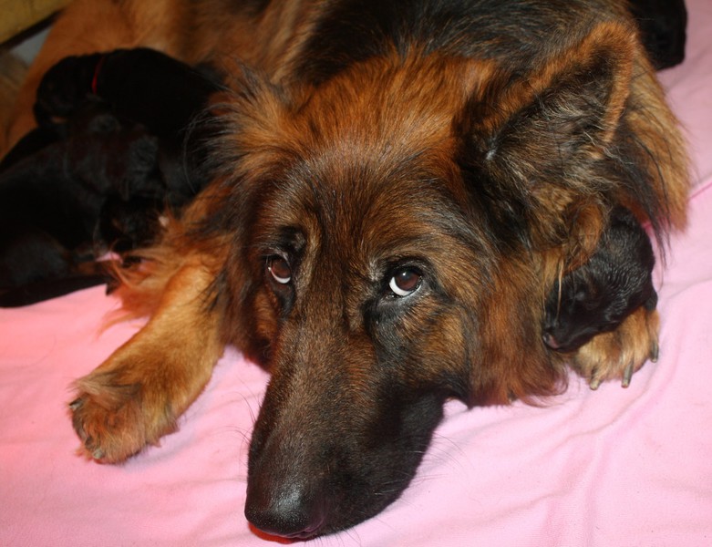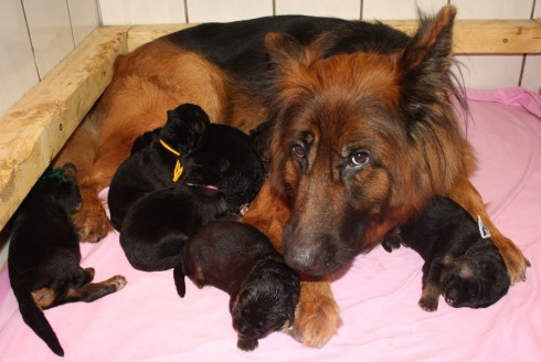 Unsere "Gitti vom Nagler See " mit Ihren Welpen.