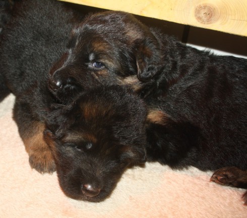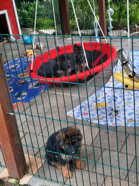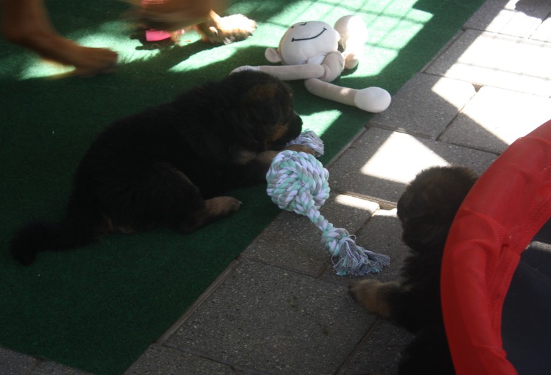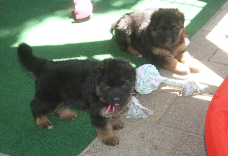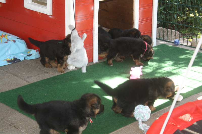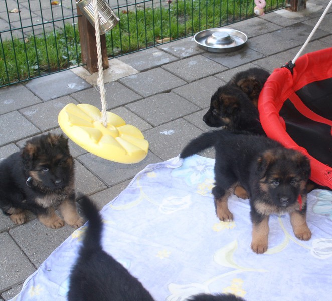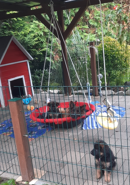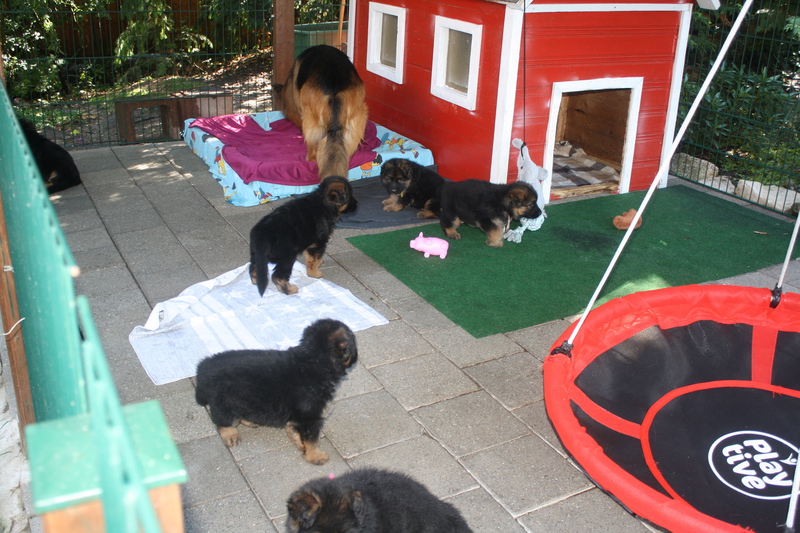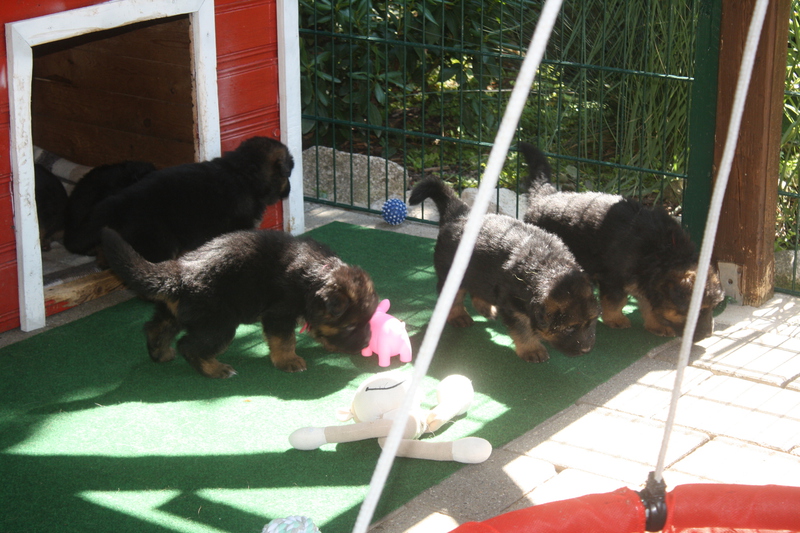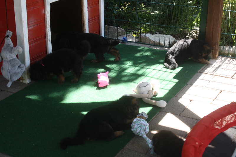 Sie entwickeln sich prächtig und freuen sich endlich im Welpenauslauf zu sein,