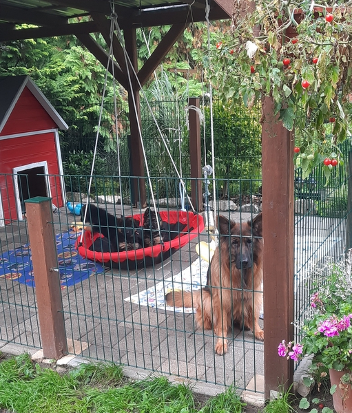dürfen sie jetzt in den großen Auslauf im Garten.