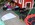 ein rotes, rot/weißes, gelb,pink, pink/weißes Band.